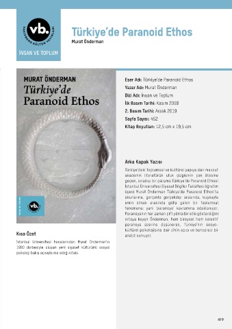 Eser Adı: Türkiye’de Paranoid Ethos