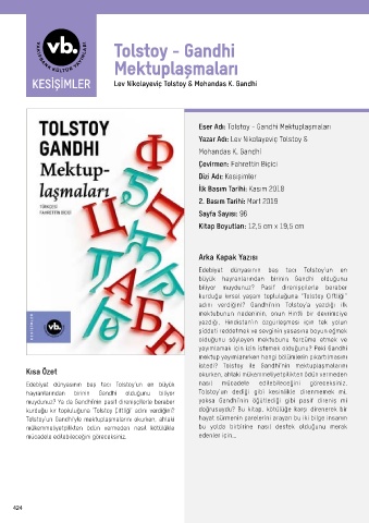 Eser Adı: Tolstoy - Gandhi Mektuplaşmaları