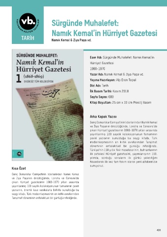 Eser Adı: Sürgünde Muhalefet: Namık Kemal’in