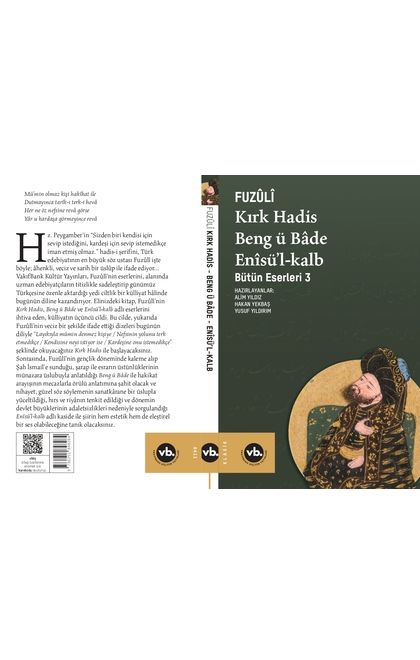 Hz. Peygamber’in “Sizden biri kendisi için sevip istediğini, kardeşi için sevip istemedikçe iman etmiş olmaz.” hadis-i şerifini, Türk edebiyatının en büyük söz ustası Fuzûlî işte böyle; âhenkli, veciz ve sarih bir üslûp ile ifade ediyor... VakıfBank Kültür Yayınları, Fuzûlî’nin eserlerini, alanında uzman edebiyatçıların titizlikle sadeleştirip günümüz Türkçesine özenle aktardığı yedi ciltlik bir külliyat hâlinde bugünün diline kazandırıyor. Elinizdeki kitap, Fuzûlî’nin Kırk Hadis, Beng ü Bâde ve Enîsü’l-kalb adlı eserlerini ihtiva eden, külliyatın üçüncü cildi. Bu cilde, yukarıda Fuzûlî’nin veciz bir şekilde ifade ettiği dizeleri bugünün diliyle “Layıkıyla mümin denmez kişiye / Nefsinin yolunu terk etmedikçe / Kendisine neyi istiyor ise / Kardeşine onu istemedikçe” şeklinde okuyacağınız Kırk Hadis ile başlayacaksınız. Sonrasında, Fuzûlî’nin gençlik döneminde kaleme alıp Şah İsmail’e sunduğu, şarap ile esrarın üstünlüklerinin münazara üslubuyla anlatıldığı Beng ü Bâde ile hakikat arayışının mecazlarla örülü anlatımına şahit olacak ve nihayet, güzel söz söylemenin sanatkârane bir üslupla yüceltildiği, hırs ve riyânın tenkit edildiği ve dönemin devlet büyüklerinin adaletsizlikleri nedeniyle sorgulandığı Enîsü’l-kalb adlı kaside ile şiirin hem estetik hem de eleştirel bir ses olabileceğine tanık olacaksınız.