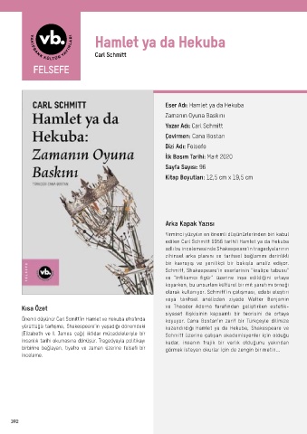 Önemli düşünür Carl Scmitt’in Hamlet ve Hekuba etrafında koyuyor. Cana Bostan’ın zarif bir Türkçeyle dilimize