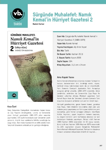 Eser Adı: Sürgünde Muhalefet Namık Kemal’in