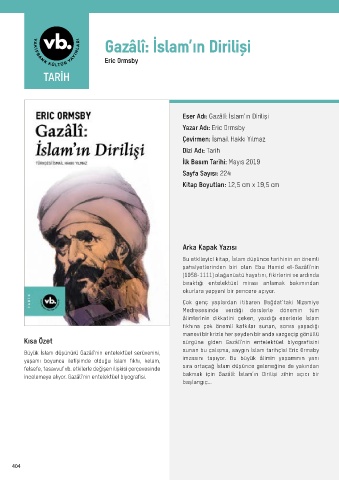 Eser Adı: Gazâlî: İslam’ın Dirilişi