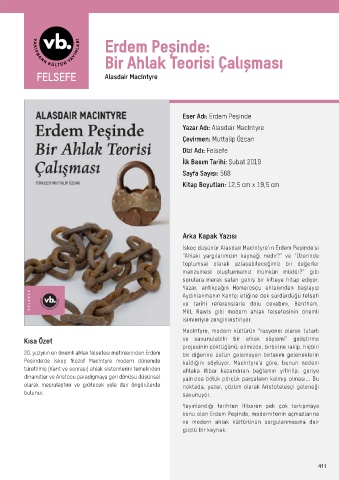 20. yüzyılın en önemli ahlak felsefesi metinlerinden Erdem bir diğerine üstün gelemeyen birtakım geleneklerin